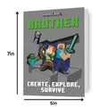 Size: 7 x 5 Inch Includes Envelope Celebrate your brother's special day with this Minecraft themed birthday card featuring an eye-catching action-packed design. This card includes an envelope for easy mailing and is sure to make him smile! Make his birthday extra memorable with this one-of-a-kind card!